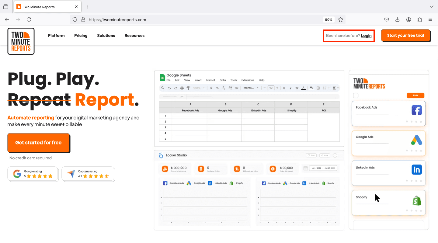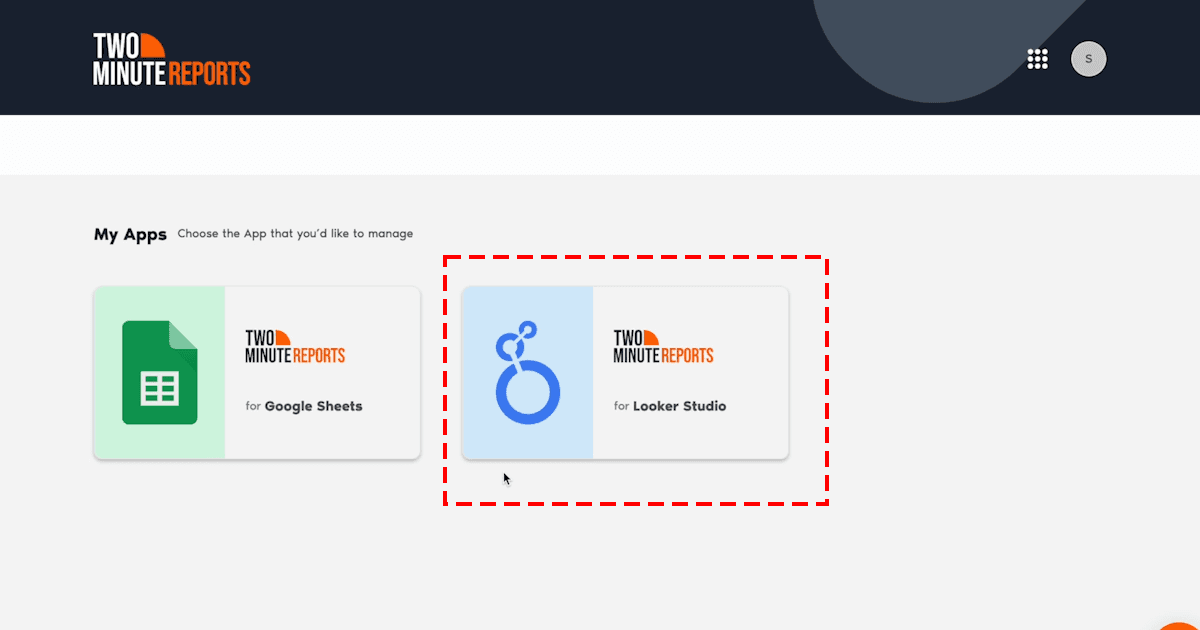 - Once logged in, choose Two Minute Reports for Looker Studio from the My Apps page.