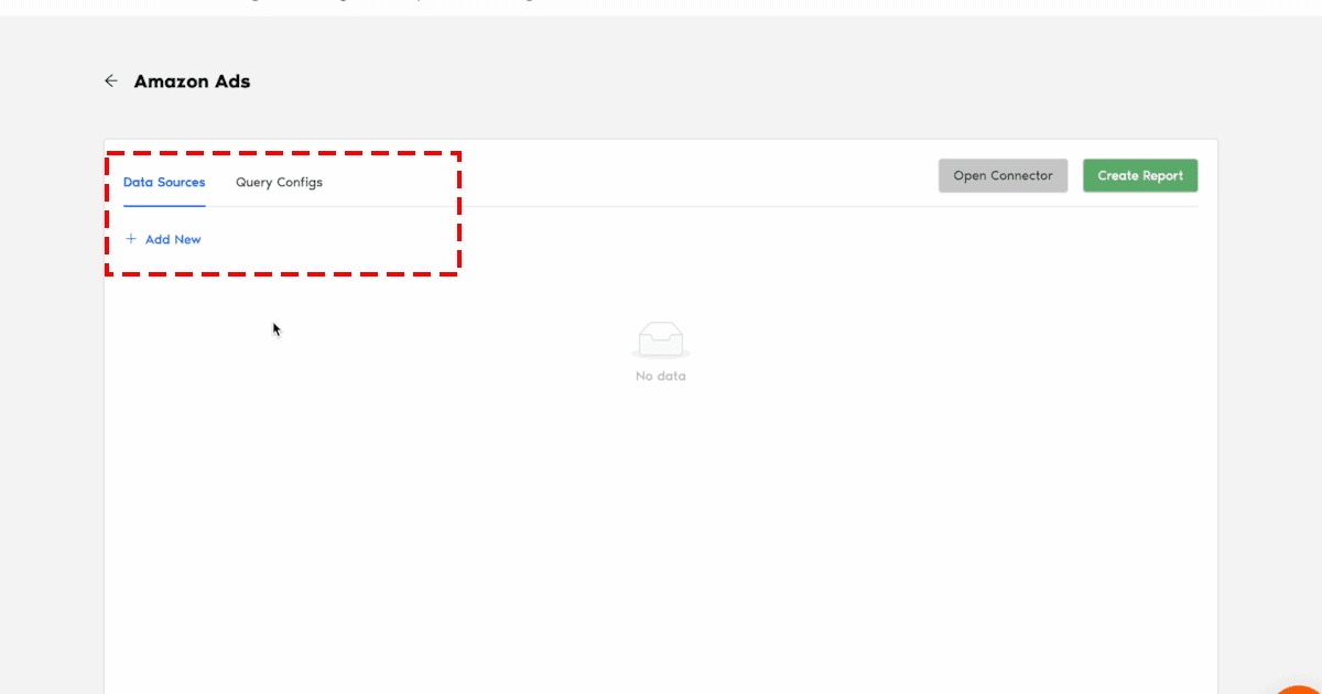 - Once inside the Amazon Ads Connector dashboard, click “Add New” from the Data Sources section.