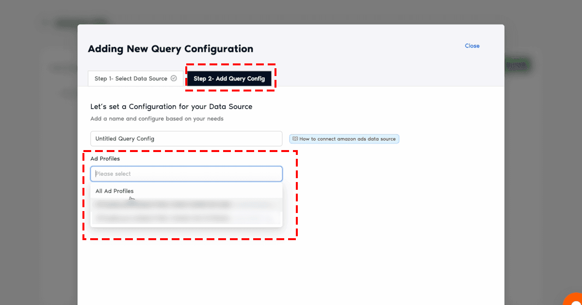 - In the next tab, name the query and choose the relevant Ad Profiles. You can choose one or multiple Ad Profiles at the same time.