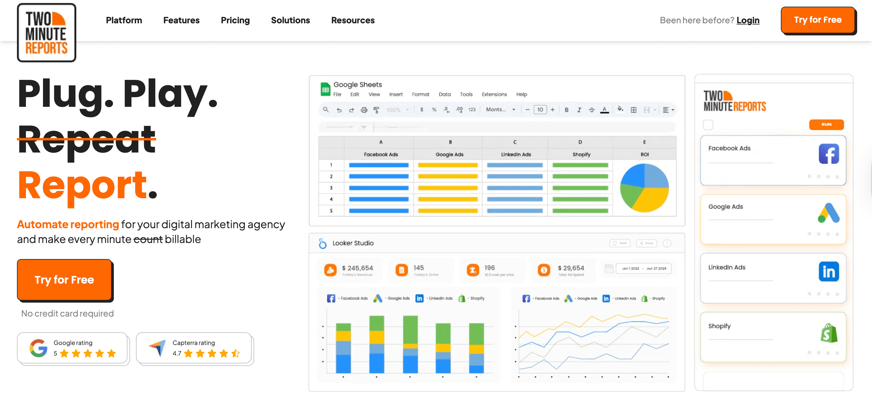 Seamless integrations – Pull data from 30+ marketing, ads, and analytics platforms directly into Google Sheets or Looker Studio.