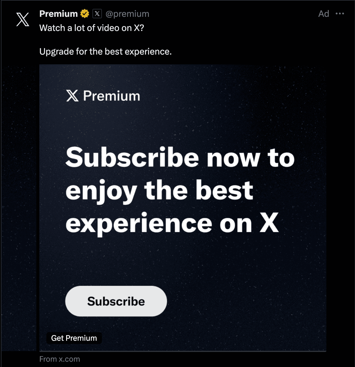 In the above example, you can see how brevity captures the audience’s attention. The caption, image copy, and CTA highlight the purpose and the next action - if you enjoy watching videos on X, upgrading to the premium version enhances the viewing experience - one shot at a time.