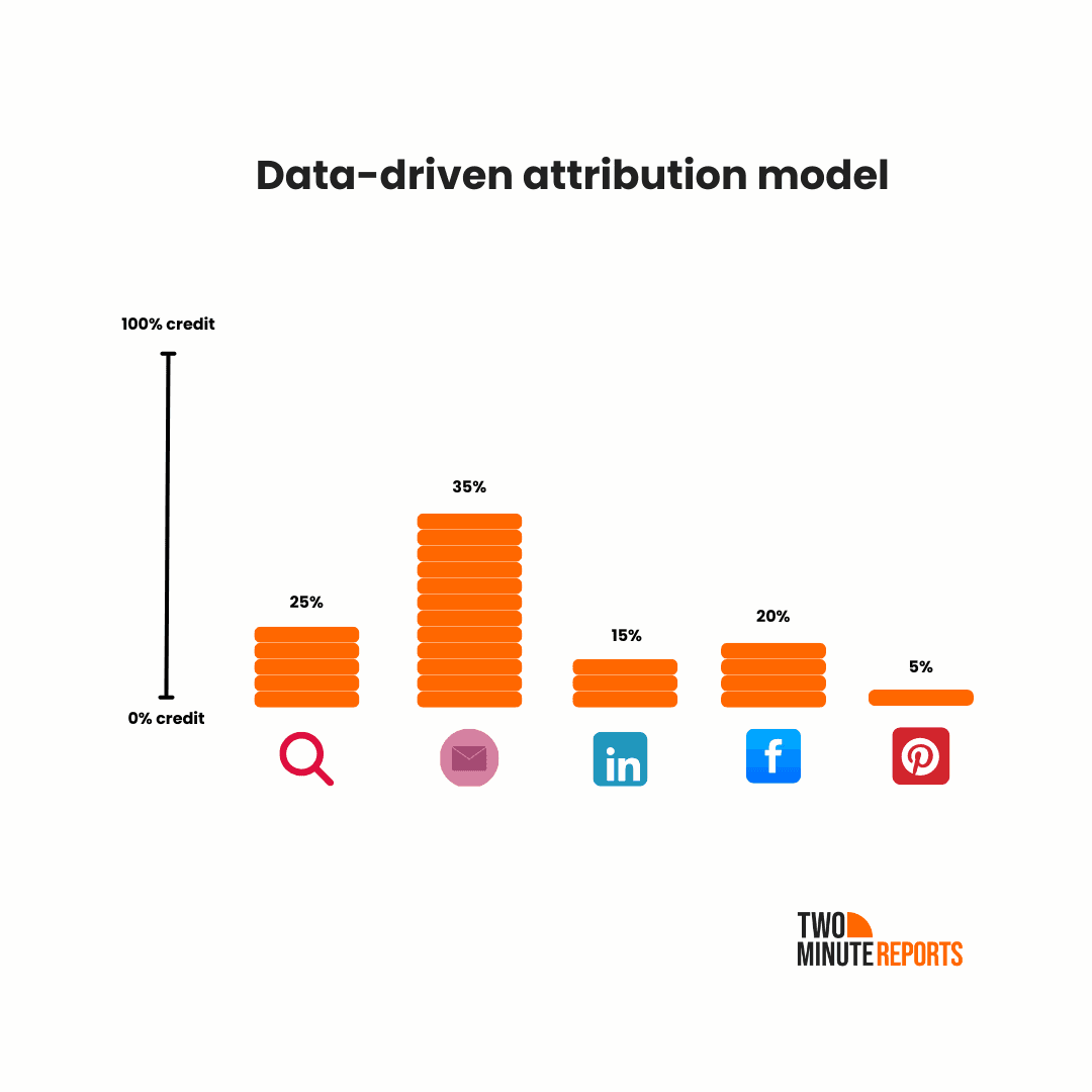 - Example: If a customer initially finds your brand through a LinkedIn ad or search but completes the purchase after clicking on a retargeting ad, it gets full credit.