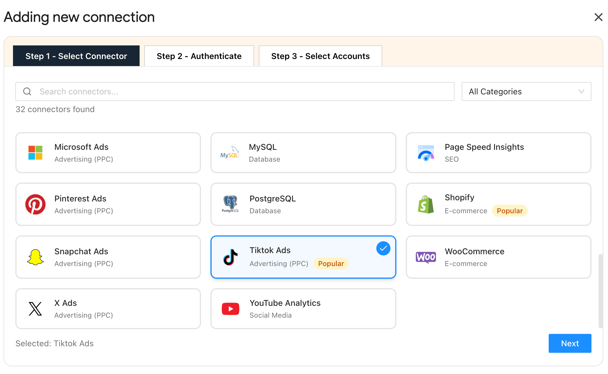 - Connect your TikTok Ads accounts by following the on-screen instructions to verify your credentials.