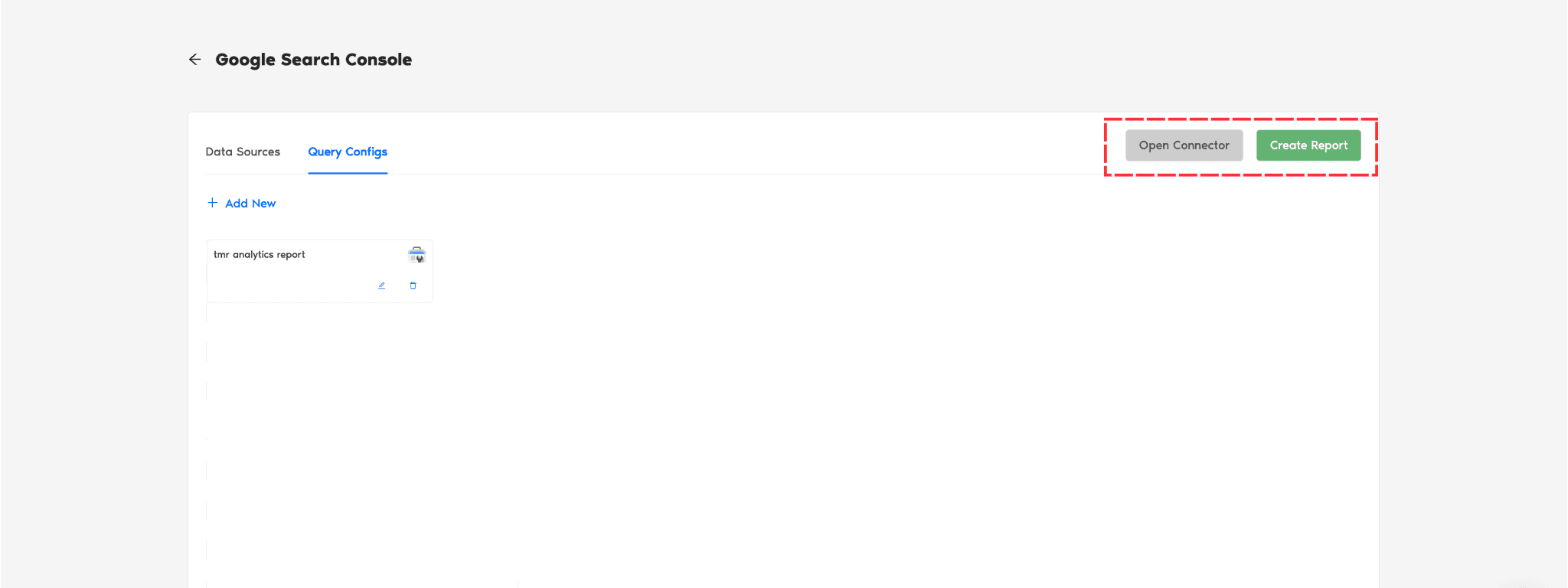 - Next, select the relevant Query Config for your GSC data source and click the Connect button at the top-right corner to establish a connection from TMR to Looker Studio.