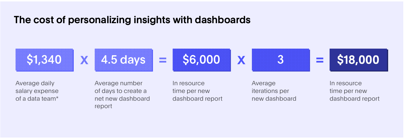 Did you know it costs $18,000 to create a new dashboard report? This is a huge amount and exceeds your entire business budget. The cost and time double when personalizing insights takes a toll on your social media reporting insights.