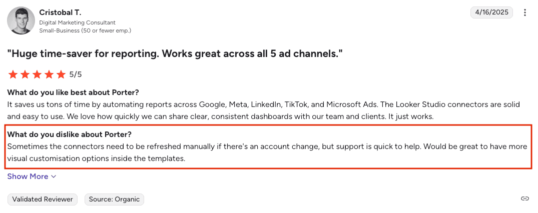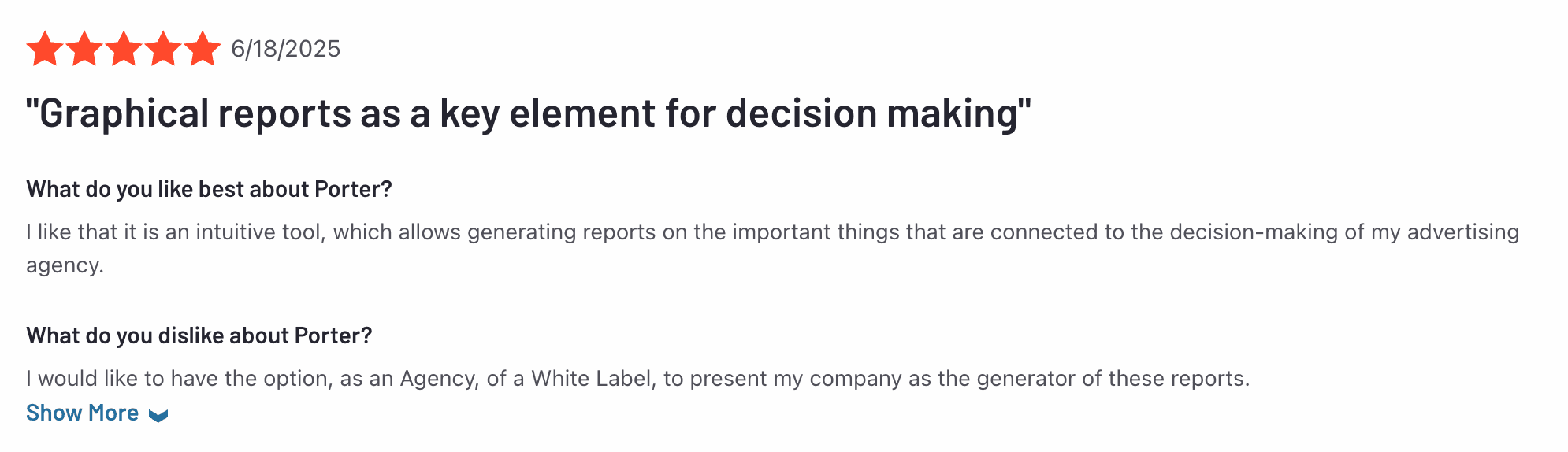 User reviews play a major role in shaping the real-world effectiveness of a reporting tool. Here’s how customers rate Supermetrics and Portermetrics based on their actual experiences.