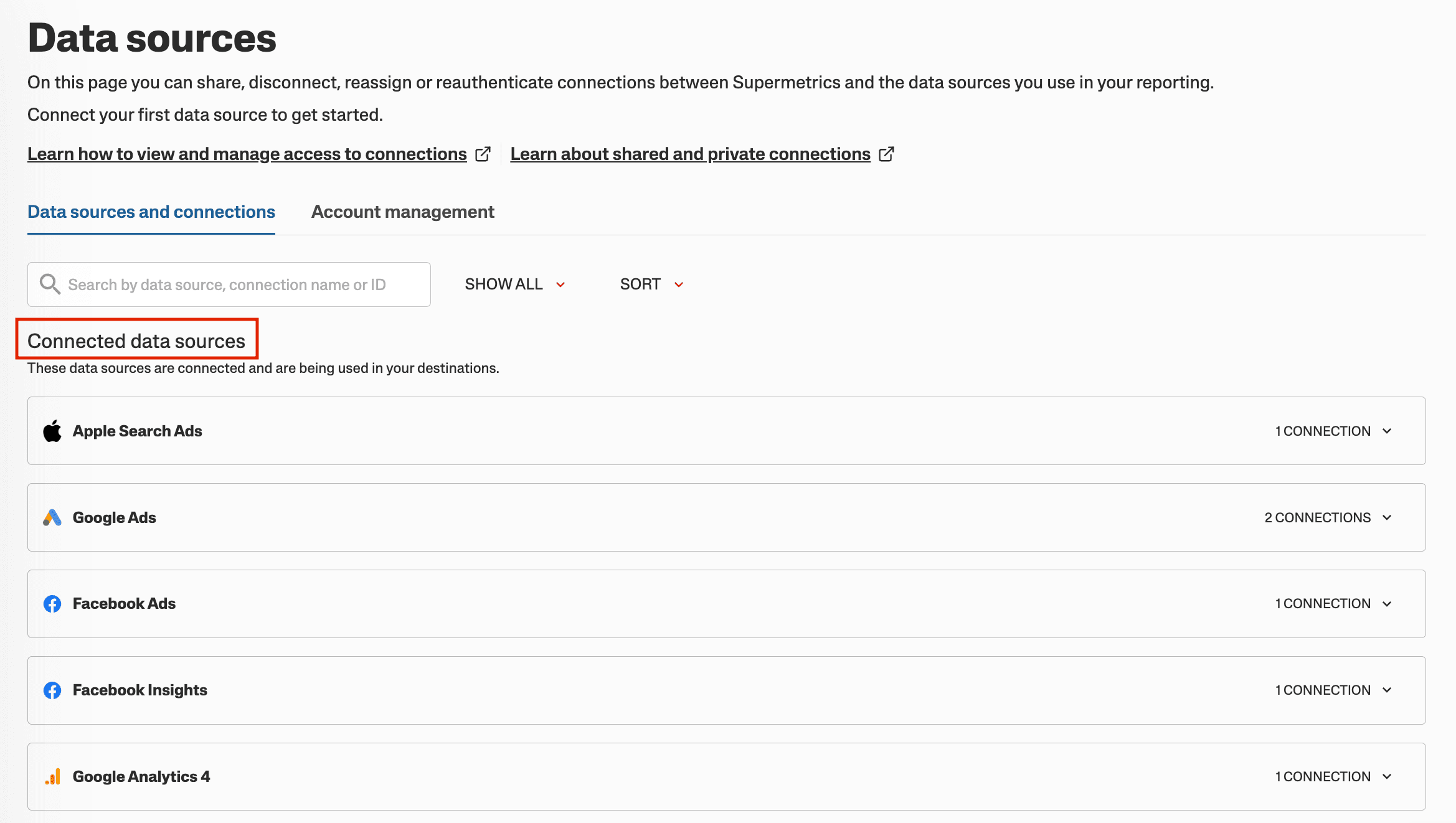 For cases that demand higher control, you can create a private connection that limits access only to you. This is ideal for sensitive accounts or client-specific projects. Whether you want to streamline teamwork or maintain strict access boundaries, Supermetrics lets you stay in control of how your data is accessed and used.