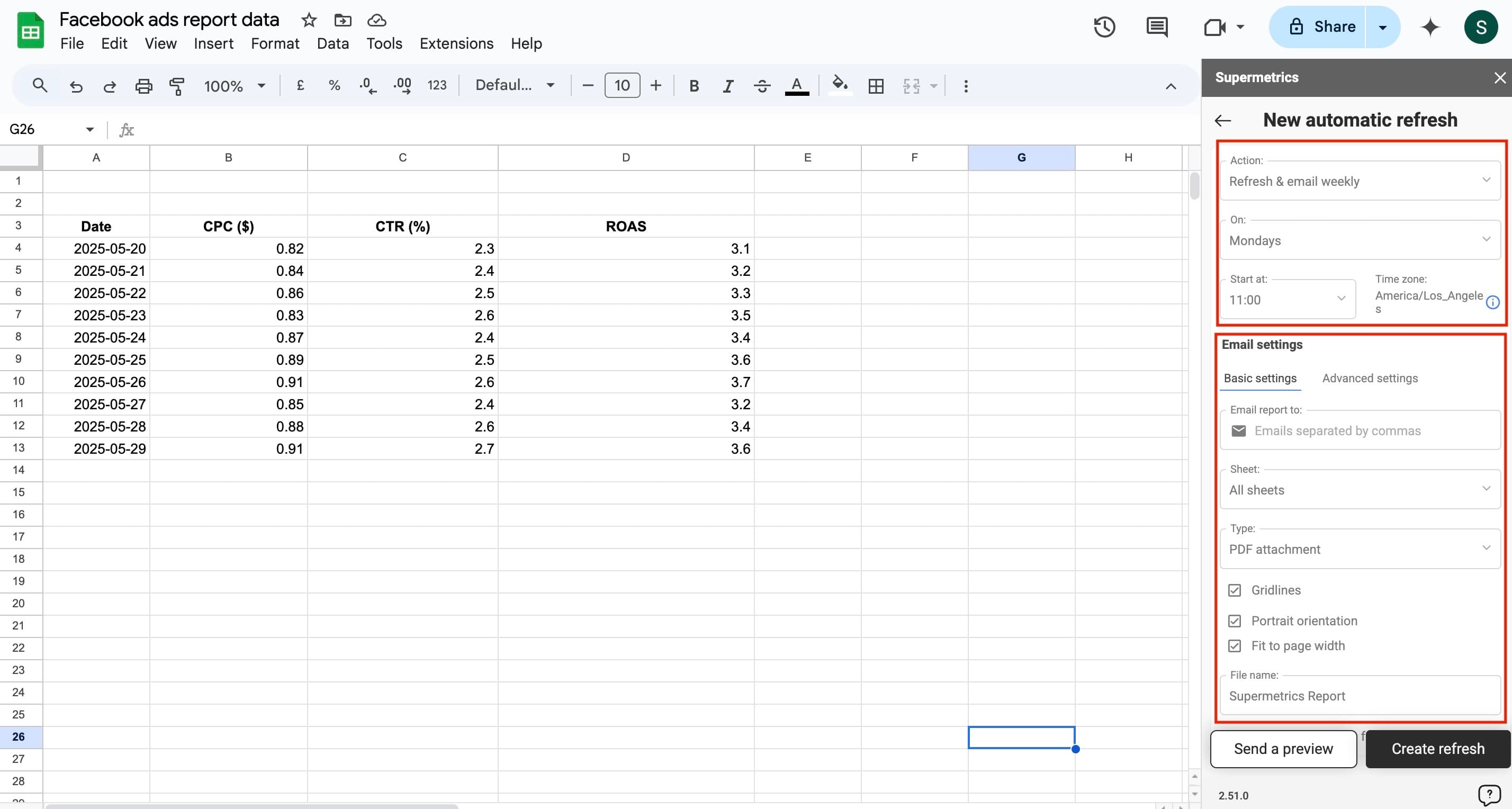 With Supermetrics, you can set up automated refreshes at your preferred schedules. One standout aspect is that you can add multiple scheduled refreshes and manage everything in one place. You can view: