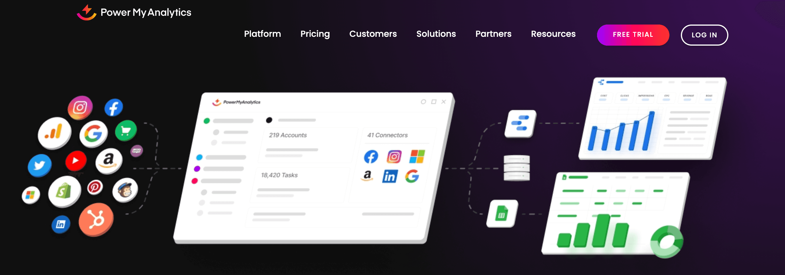 Supports 30+ platforms such as Google Ads, Google Analytics 4, Facebook Ads, Google Search Console, HubSpot, etc.