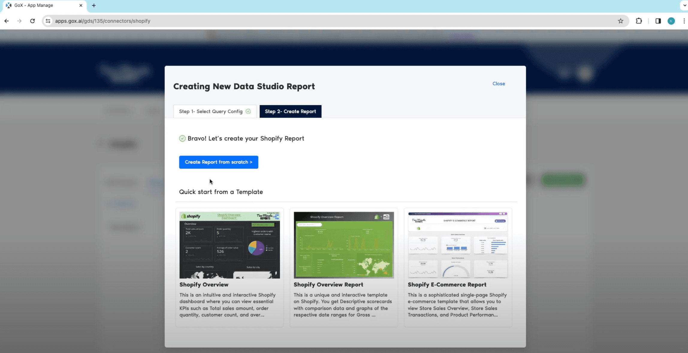 - You will have all the built-in templates specifically designed for Shopify data studio. Select the report template that best fits your needs and connect Shopify to Google data studio.